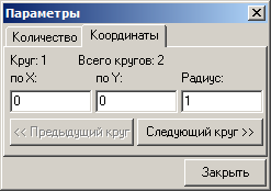 На окне присутствует вкладка Координаты (Рисунок 5) предназначенная для ручного ввода параметров круга. Вкладка недоступна если количество кругов меньше одного или установлен параметр «Задавать координаты автоматически».