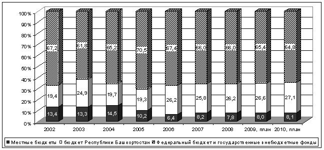 С другой стороны доля поступлений в федеральный бюджет также сократилась. Это говорит о том, что попытка децентрализовать бюджетную систему остановилась на региональном уровне и не дошла до муниципальных образований (так доля налогов, собранных на территории Республики Башкортостан и поступивших в республиканский бюджет увеличилась с 19,4 до 27 % - при том, что данные доходные поступления должны были перейти на муниципальный уровень). Анализ был проведен для МО Республики Башкортостан, но подобная тенденция характерна для многих субъектов Российской Федерации.