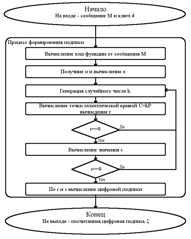 Для получения ЦП под сообщением необходимо выполнить ряд действий. Схематическое представление алгоритма формирования ЦП можно увидеть на рисунке 2.