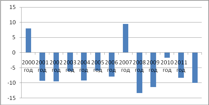 Немаловажным показателем при рассмотрении оттока капитала является так называемые "чистые ошибки и пропуски" [3], данный показатель в полном объеме относится к операциям прочих секторов. Имеется в виду, что наибольшие сложности при составлении платежного баланса возникают в связи с учетом финансовых операций по этим секторам. Фактически это нелегальный отток капитала, графическая интерпретация представлена на Рисунке 2.