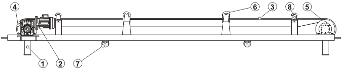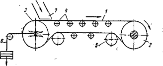 Загрузка материала осуществляется с помощью загрузочного устройства 7, а разгрузка с концевого (приводного) барабана или в любой промежуточной точке при помощи специального разгрузочного устройства.