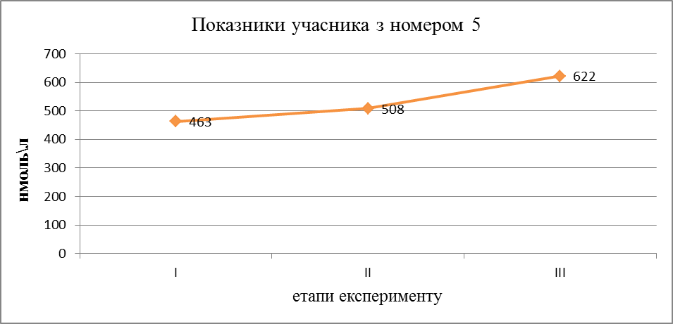 Рівень концентрації пептидів середньої молекулярної маси у учасника з номером 5 впав більш, ніж в два рази. Учасник під номером 6 зазнав збільшення ПСММ.