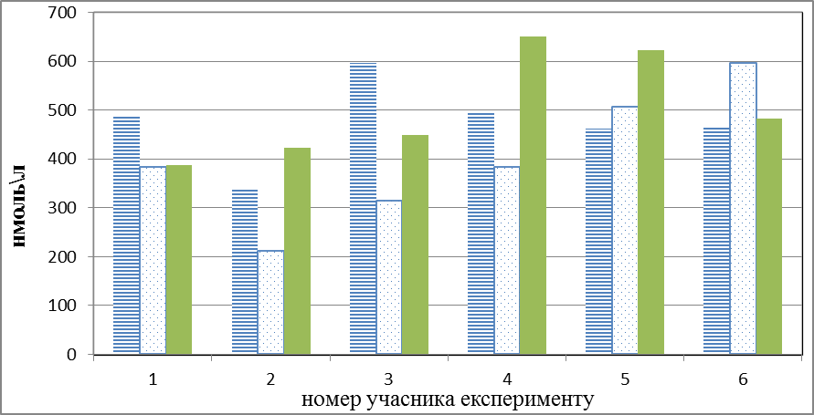 Рис. 3.4. Характер зміни концентрації пептидів середньої молекулярної маси першої групи учасників