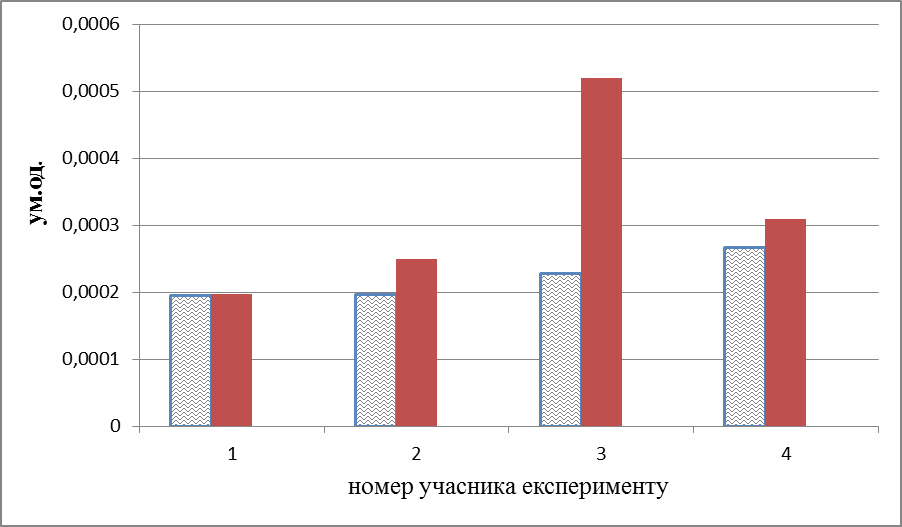 У даному випадку ми бачимо, що сталося явне зниження концентрації циркулюючих імунних комплексів в учасників під номером 1, 2, 3, а в учасника під номером 4 рівень ЦІК залишився незмiнним.
