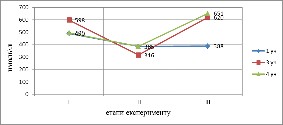 Рис. 3.1. Динаміка зміни рівня гормону кортизолу в сироватці крові