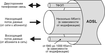 2.1.1 Состав оборудования и описание технологии цифровой линии ADSL