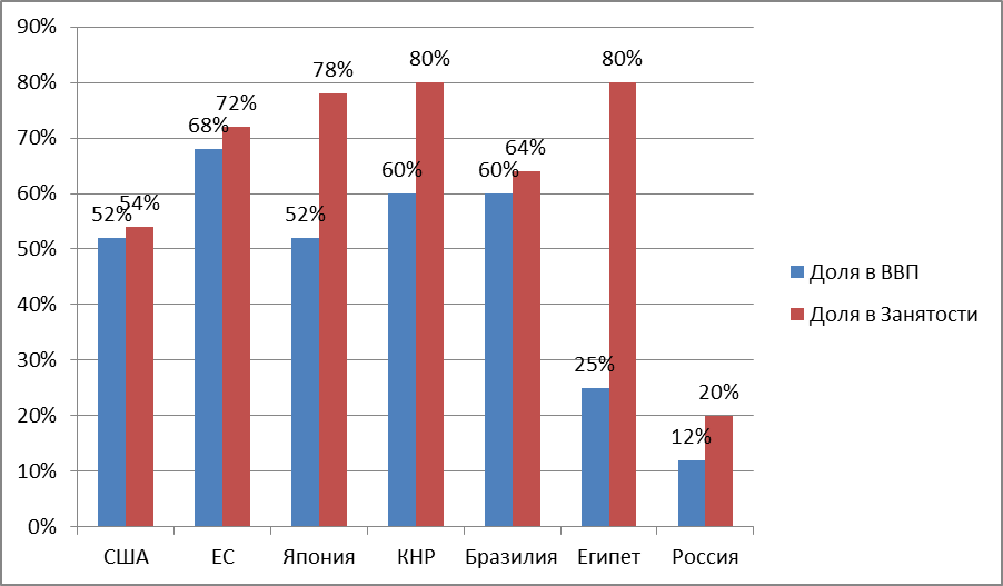 Интенсивное увеличение предприятий малого бизнеса в странах Запада началось с середины 70-х до начала 90-х годов. Сегодня в наиболее экономически развитых западных странах малые предприятия составляют 70-90% от общего числа организаций. Для сравнения приведём пример, в США - в малом бизнесе занято около 53% населения, в Японии примерно 71,7% и в страны ЕС на соответствующих предприятиях работает около половины дееспособного населения. Основная доля малого бизнеса в этих странах - это мелкие организации, в которых работают не больше 20 человек. Малый бизнес обеспечивает больше половины прироста дополнительных рабочих мест, что позволяет уменьшить долю безработицы.