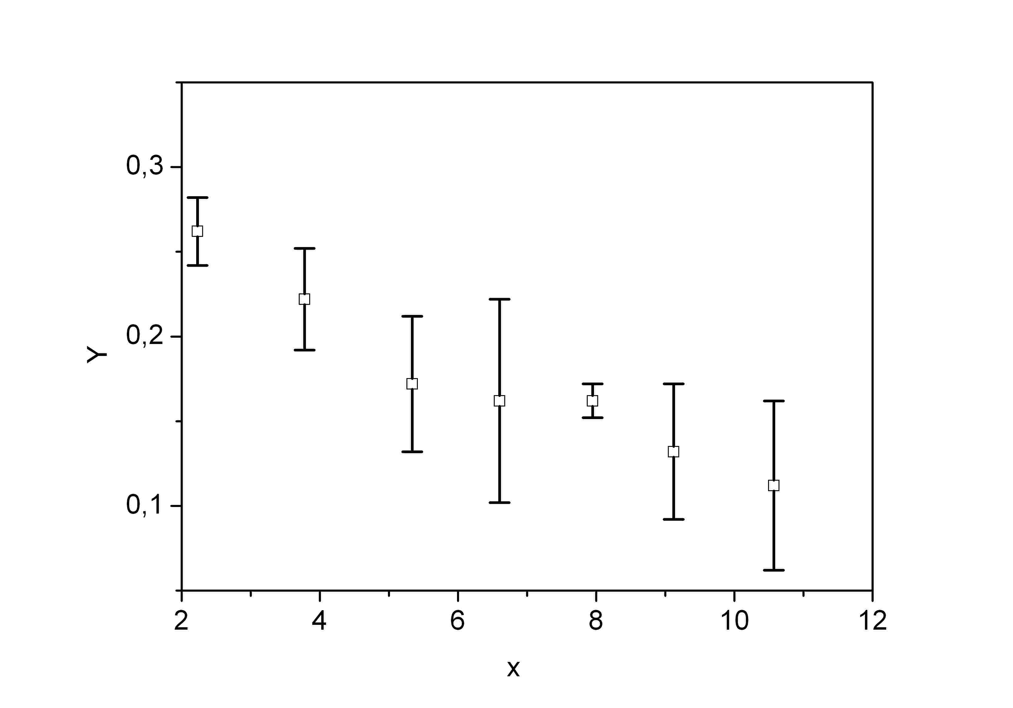 Другой пример. Часто измерения на графике приводят погрешностями барами.
