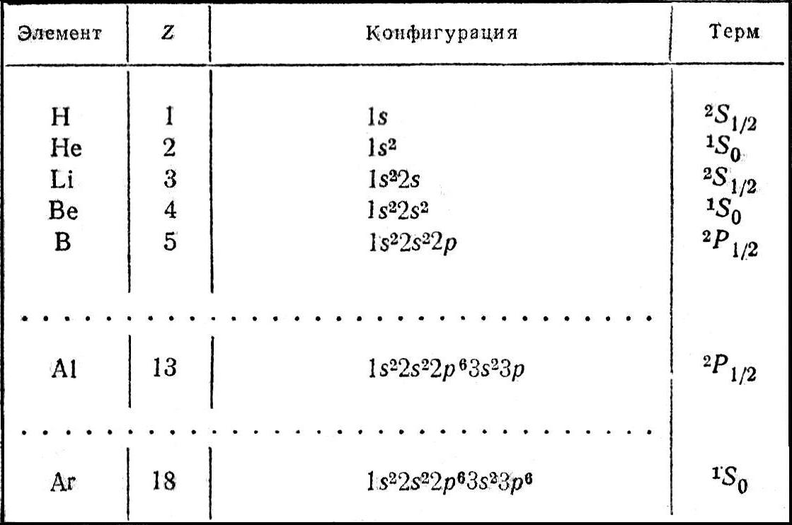 Для примера в табл. IV приведены электронные конфигурации нескольких элементов.