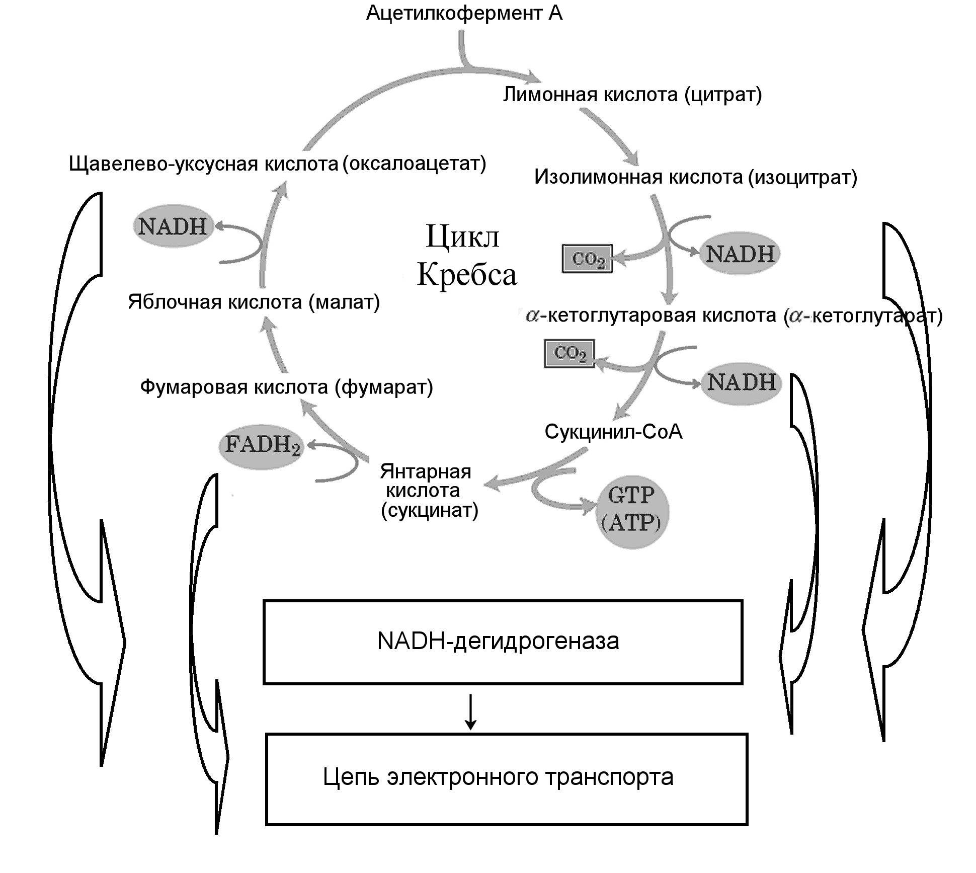 Стрелки указывают пути переноса электронов. (по Nelson, Cox, 2005)