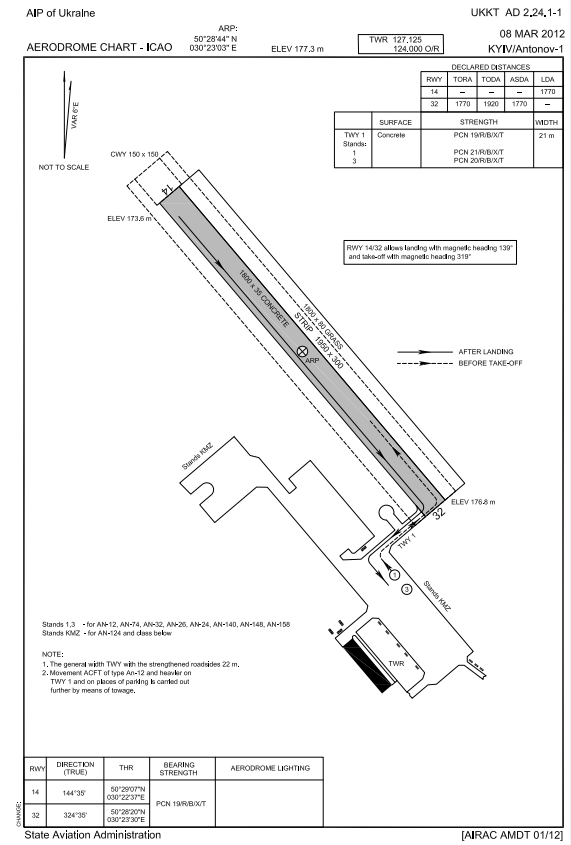 технічні параметри аеродрому Київ/Антонов-1, технологічні процедури при обслуговуванні повітряного руху.