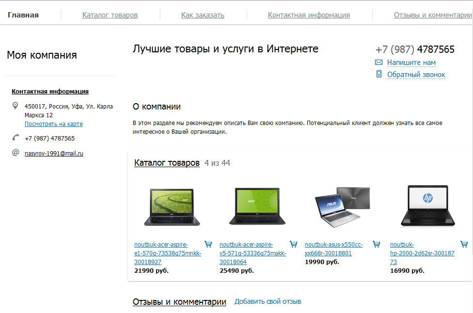 Основные возможности интернет магазина «Техномир»: