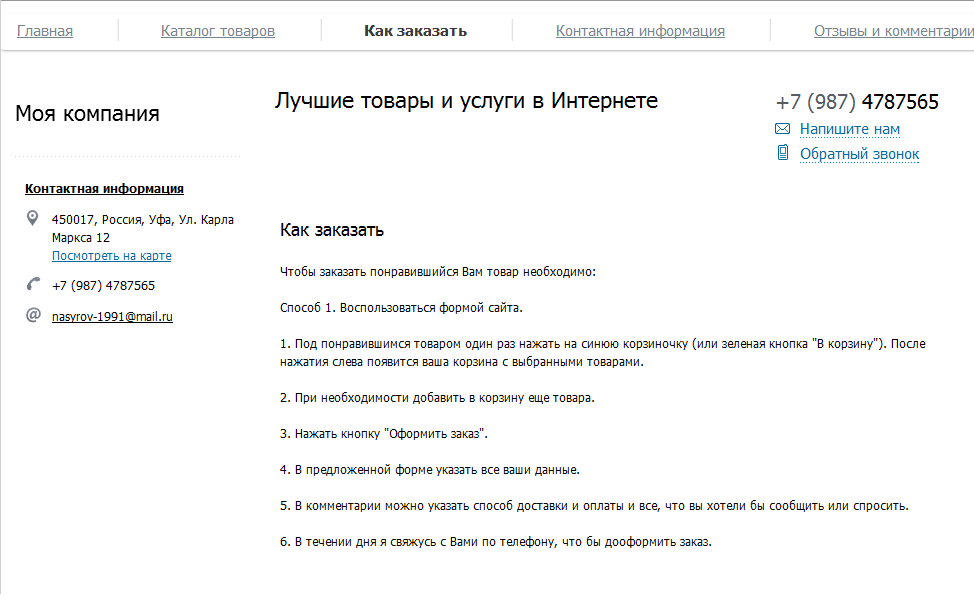 Основной функцией сайта является продажа продукции и поэтому необходимо сделать форму заказа наиболее удобной.