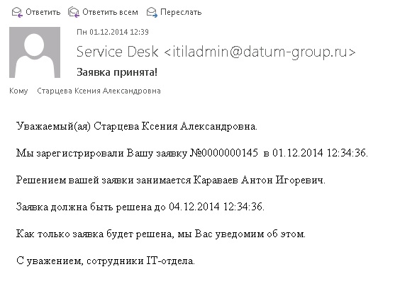 Организация управления IT сервисом компании ООО «Датум Групп» на основе программного обеспечения «ITILIUM»