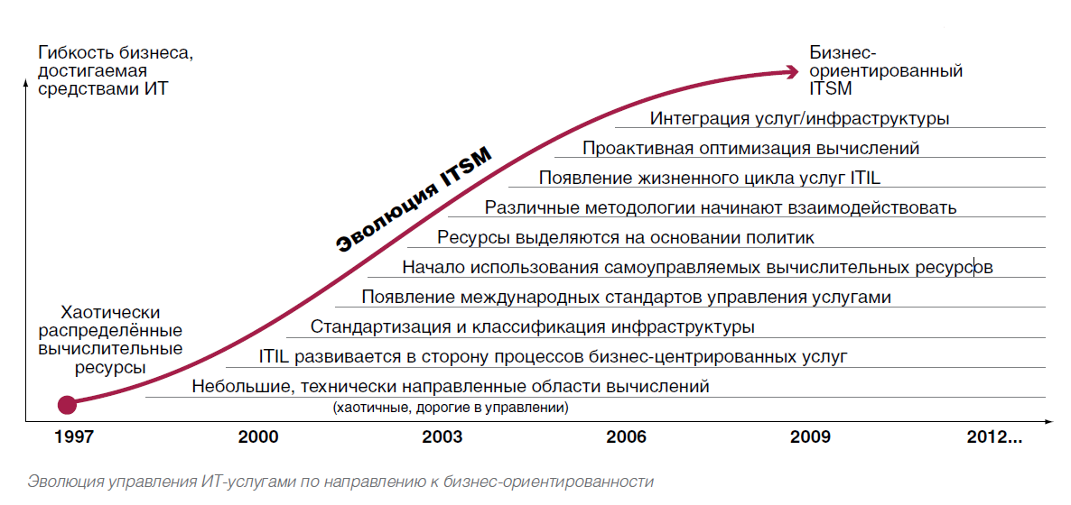 За последние 20 лет произошла «эволюция» в управление IT услугами по направлению к бизнес-ориентированности. На рисунке 15 представлена эволюция ITSM.