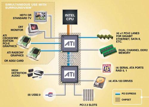 Это значит, что вместе с видеокартой CrossFire Edition самым нетерпеливым на первых порах обязательно придется обзавестись новой системной платой с чипсетом Radeon Xpress 200 CrossFire в версии под Intel LGA775 процессоры Pentium 4 или Socket 939 чипы AMD Athlon 64/Athlon FX.