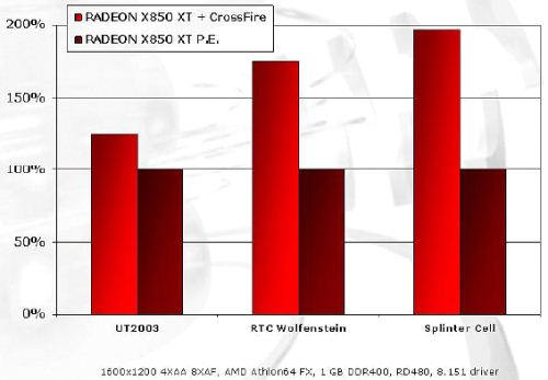 Как вы думаете, с чего стартовала презентация новой технологии? Правильно, с возможностей технологии CrossFire при тестировании системы в игровых приложениях - вроде UnrealTournament 2003, Return to Castle Wolfenstein и SplinterCell.