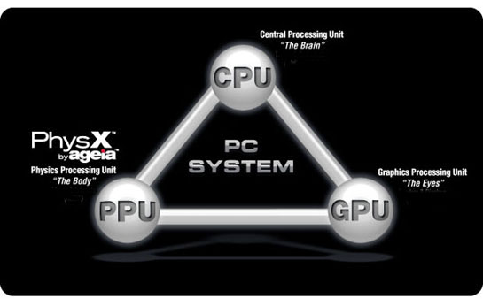 Физические ускорители (PPU - Physics Processing Unit) являются узкоспециализированными устройствами, дополняющими традиционную связку CPU-GPU и освобождающие их от обязанности обсчитывать физические эффекты в современных трехмерных компьютерных играх. Первым прообразом процессоров нового типа стал PPU PhysX, разработанный компанией Ageia в 2005 году.