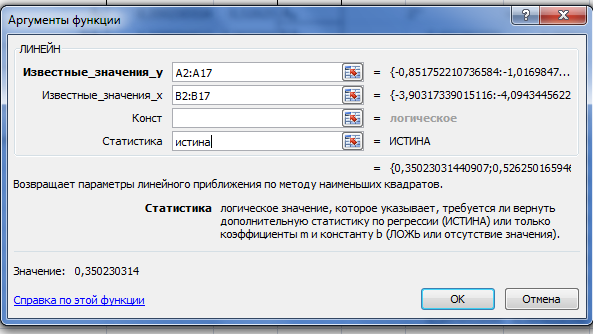 Коэффициенты-значения параметров уравнения регрессии;