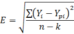 Е ошибка модели или среднеквадратическое отклонение остатков;