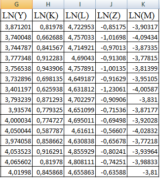 Цель данной работы научиться строить эконометрические модели производственной функции и анализировать ее в среде Excel.