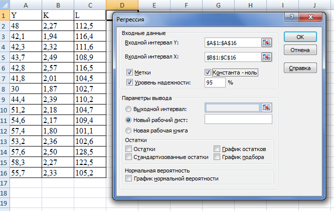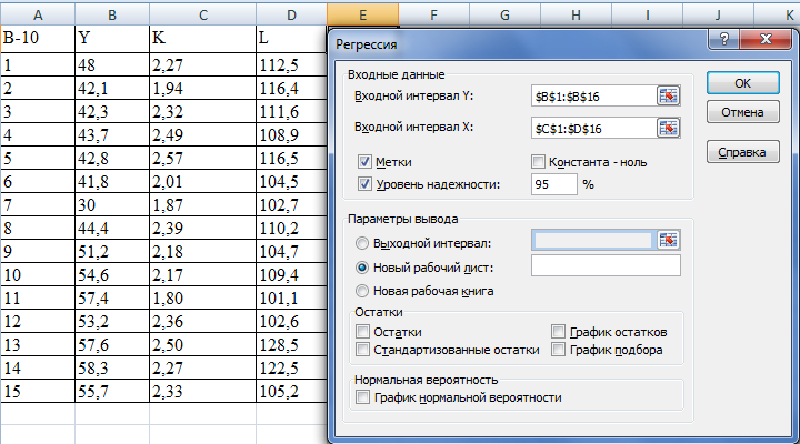 Чтобы проанализировать взаимосвязь между факторами, воспользуемся функцией «Регрессия». Множественный регрессионный анализ с помощью этого инструмента можно выполнить в двух формах: