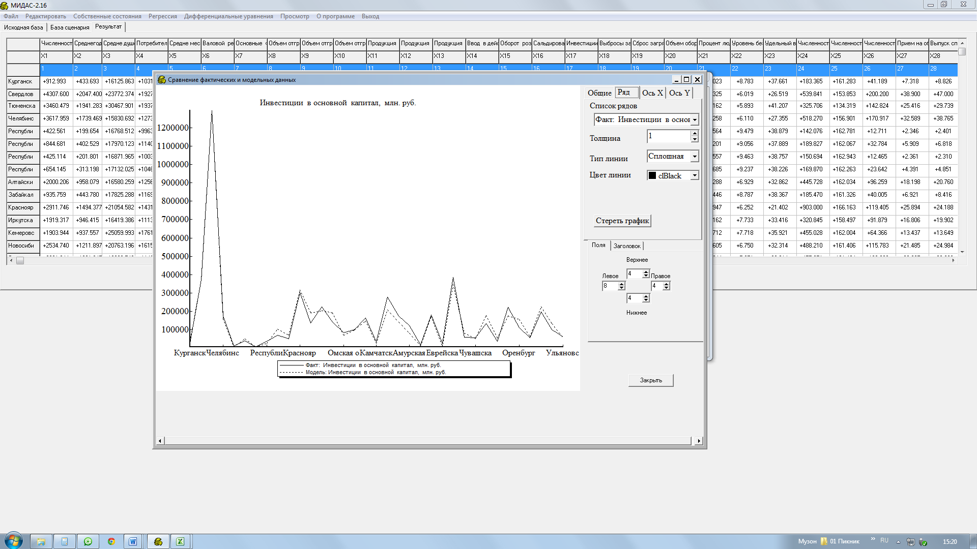 2.2 Моделирование индикаторов устойчивого развития с использованием современной компьютерной программы МИДАС методом главных компонент