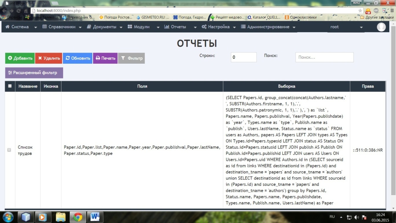 В третьей главе представлена подробная оценка системы учета публикаций. Кроме того, в ходе проведенного проектирования один из недостатков информационной системы был устранен, а именно был разработан отчет, соблюдающий все требования и нормативы ГОСТ.
