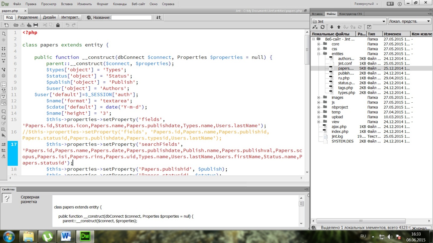 Проектирование информационной системы учета научных публикаций в среде Adobe Dreamweaver
