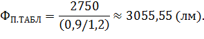 Так как рассчитанный световой поток может отличаться от табличного на 10 20 %, то можно сделать вывод, что ближайшее значение к по таблице 5.4 это значение 3100. Следовательно, светильники в помещении оснащены люминесцентными лампами дневного света (ЛД) мощностью = 40 Вт.
