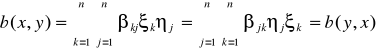 Пусть , тогда отображение , , является билинейным функционалом на пространстве L , вообще говоря, отличным от b. Если , т. е. , , функционал b называется симметрическим билинейным функционалом. Множество всех симметрических билинейных функционалов на пространстве L обозначим через .
