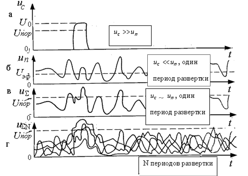 отраженный от нее сигнал uсs(t) может быть записан в виде аддитивной смеси когерентной uскs(t) = Umкcos(ct-0) составляющей и некогерентной uс.нкs(t) = Umнкcos(ct-1(t)) составляющей (узкополосного гауссова шума):