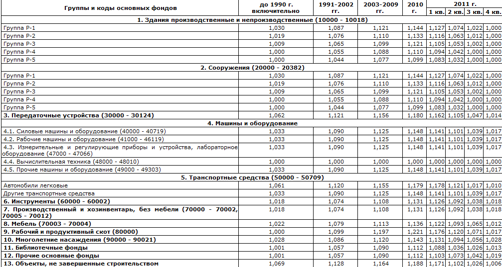Приложение В. Индексы переоценки стоимости основных фондов, оборудования, предназначенного к установке, и объектов, не завершенных строительством, по состоянию на 1 января 2012 года |