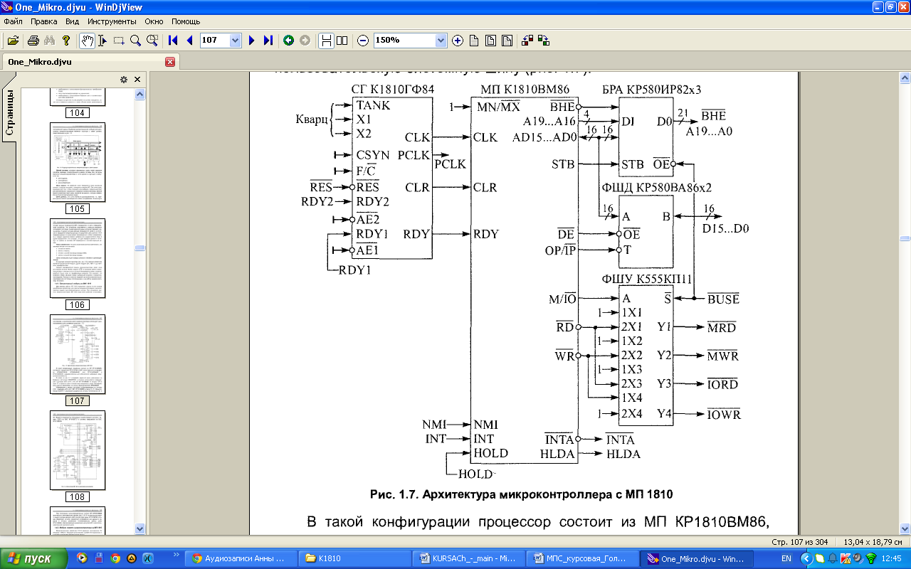Так як за варіантом розрядність адреси даних = 20 біт, то необхідно використовувати 20/16 2 мікропроцесора К1810ВМ86.