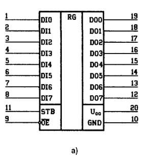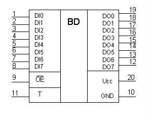 DО7-DО0 - вхід / вихід ліній даних. Вони є вхідними, якщо на Т сигнал низького рівня, і вихідними, якщо на Т сигнал високого рівня;