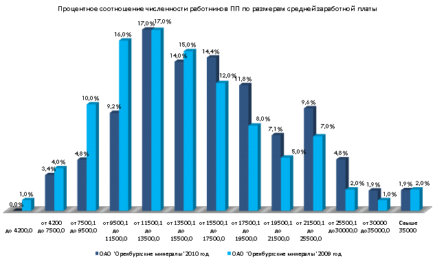 Фонд заработной платы работников ОАО "Оренбургские минералы" за 2010 год увеличился на 28 907 753 руб. по сравнению с 2009 годом. Тарифные ставки и должностные оклады с 1 января 2010 года были увеличены на 10%.