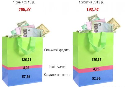 За даними НБУ, за 12 місяців (листопад-2013 - листопад 2014 року) споживчі кредити становили 83% всіх нових позик: на них припадало 110 з 132,3 мільярдів гривень кредитів, виданих фізособам. Не дивно, що пропозицію саме цих кредитів банки в минулому році збільшували. «Найбільш інтенсивно в 2013 році розвивався сегмент споживчого беззаставного кредитування. За минулий рік значно збільшилася як кількість учасників цього ринку, так і кількість кредитних програм усередині кожного з них», - розповідає Володимир Радько, начальник відділу альтернативних каналів продажів Банку Кіпру [39].