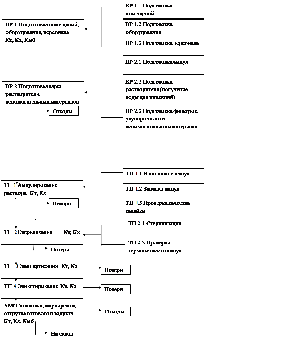 [0.0.1] Введение [0.0.2] Экспериментальная часть [0.0.3] Характеристика конечной продукции производства [0.0.4] Химическая схемы производства [0.0.5] Технологическая схема производства [0.0.6] Аппаратурная схема производства [1] Установки получения воды для инъекций (WFI) [2] Дистилляционный аппарат И-ДПЭ 4-3 [2.0.1] Характеристика продукта [2.0.2] Технологический процесс производства [2.1] ВР 1.1 Подготовка помещений [2.2] ВР 1.2 Подготовка оборудования [2.3] ВР 1.3 Подготовка персонала [2.4] ВР 2.1 Подготовка ампул [2.5] ВР 2.1 Подготовка растворителя [2.6] ВР 2.3 Подготовка фильтров [2.7] ТП 1.1 Наполнение ампул [2.8] ТП 1.2 Запайка ампул [2.9] ТП 1.3 Проверка качества запайки [2.10] ТП 2.1 Стерилизация [2.11] ТП 3 Стандартизация [2.12] ТП 4 Этикетирование [2.13] УМО Упаковка, маркировка [2.13.1] Материальный баланс [2.13.2] Переработка и обезвреживание отходов производства [2.13.3] Контроль производства [2.13.4] Охрана труда и техники безопасности, пожарная безопасность, производственная санитария и условия труда работников [2.13.5] Охрана окружающей среды [2.13.6] Перечень производственных инструкций [2.13.7] Информационные материалы [2.14] Способы стерилизации (термический, газовый, фильтрованием, радиационный). Характеристика, область применения. [2.15] Cтерилизация фильтрованием [2.16] Стабилизация инъекционных растворов: физическая, химическая, микробиологическая. Характеристика. [2.17] Классификация фильтрующих материалов. Ассортимент. Характеристика. [2.17.1] Список литературы |