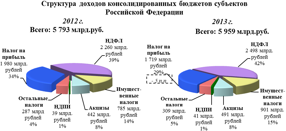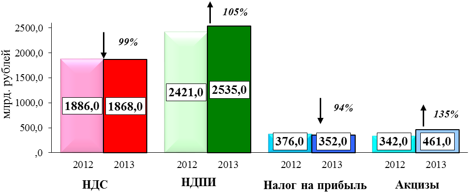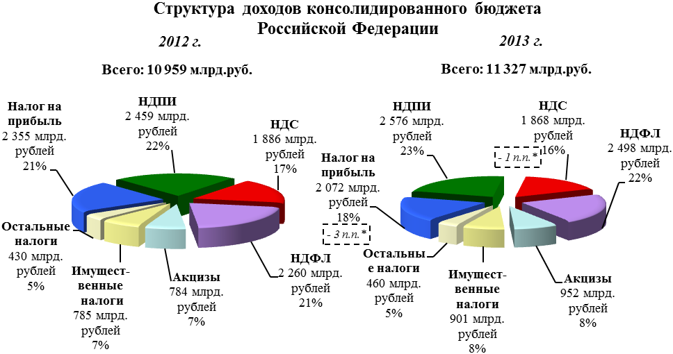 2.2. Поступление налоговых доходов в консолидированный бюджет Российской Федерации в 2012-2013 гг. 13