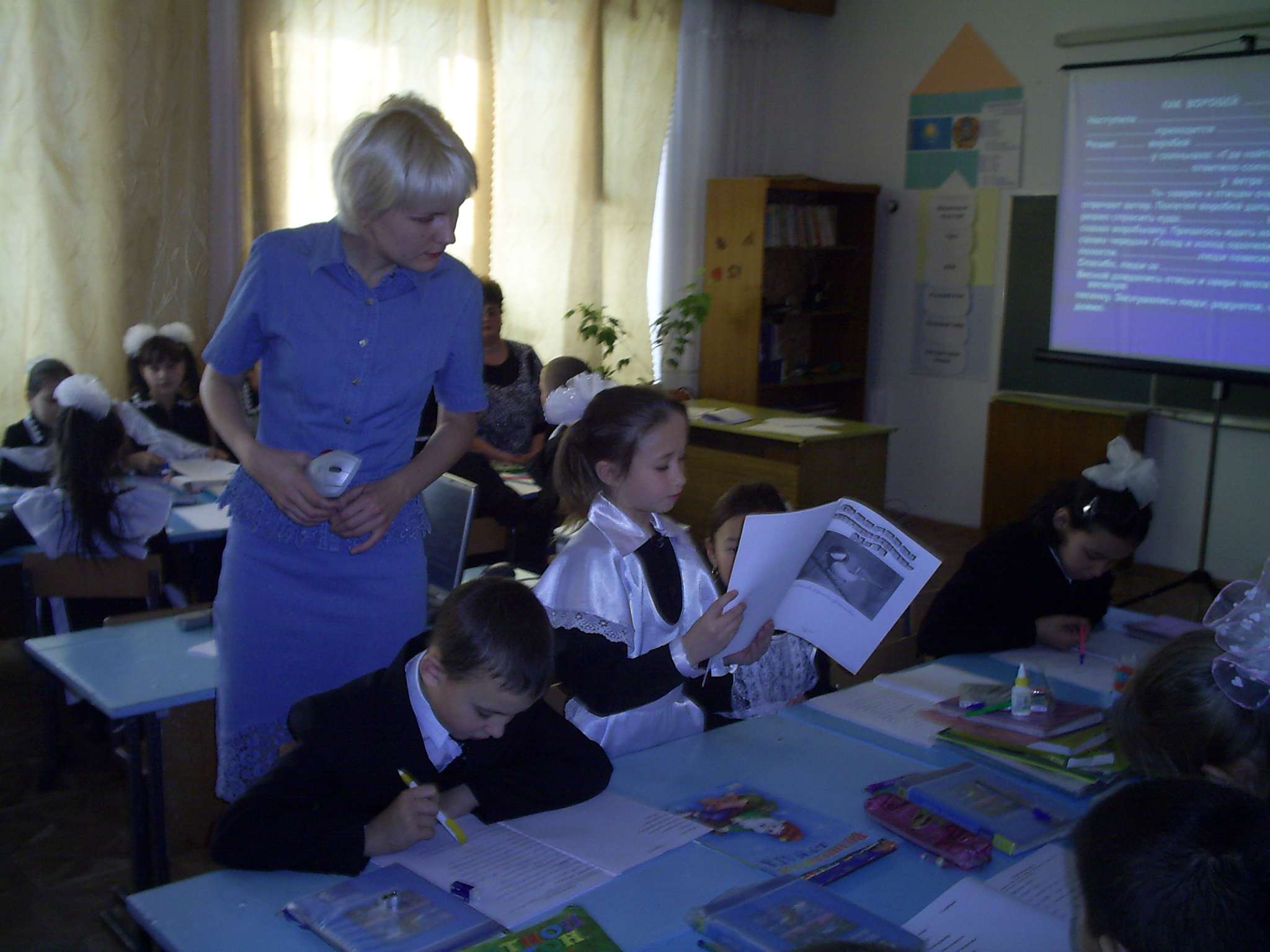 Давайте, ребята, скажем нашей дорогой Саре Алпысовне большое спасибо за замечательный подарок - учебники-тетрадки «Самопознания». А сейчас настало время приготовить ей подарок от нас. А подарком будут наши рисунки.
