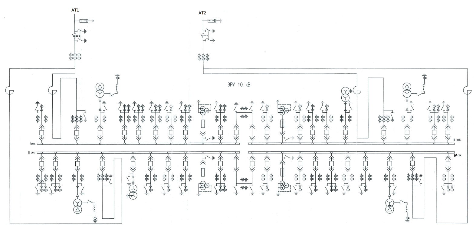 От шин 10 кВ отходит 39 кабельных линий, для компенсации токов однофазного замыкания на землю используются дугогасительныереакторы.