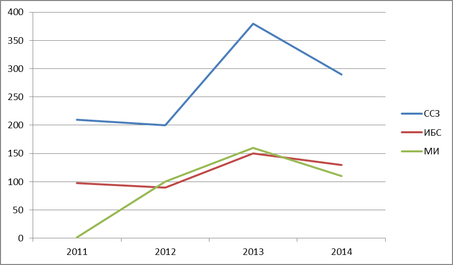 Рис.Динамика смертности от сердечно-сосудистых заболеваний,