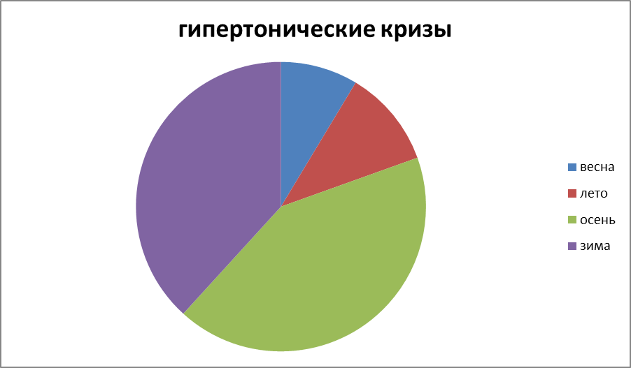 Вспышки Гипертонических кризов в зависимости от сезона.