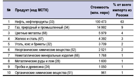 Рис. 2. Импорт 27 стран-членов ЕС из России, 2010 г.*