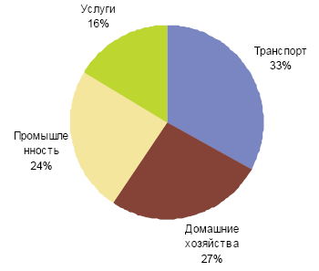 Рис. 6. Конечное потребление энергии в России, 2009 г.: доли по секторам (%)*