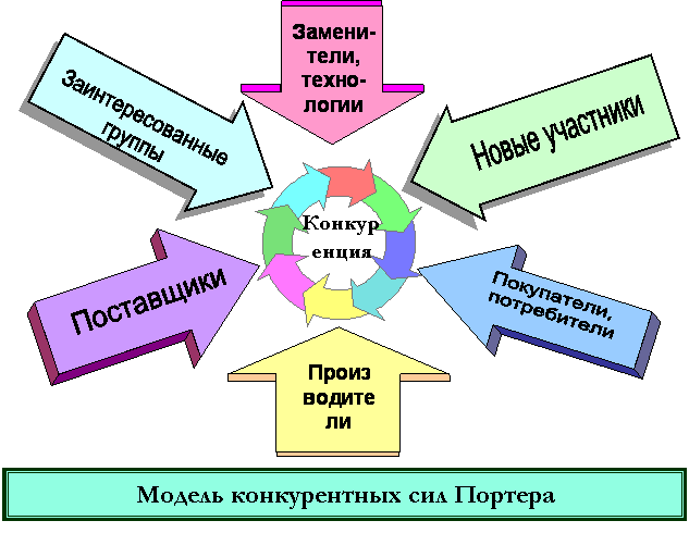 В классической модели конкурентной среды предприятия М. Портера на рисунке 1, значение и сила влияния каждого из факторов конкуренции меняется от рынка к рынку и определяет цены, издержки, размеры капиталовложений в производство и сбыт продукции и, в конечном счете, прибыльности бизнеса. Поставщики и покупатели, стараясь извлечь собственную выгоду, снижают прибыль фирмы. Конкуренция внутри отрасли также снижает прибыль фирмы, так как для поддержания конкурентных преимуществ, приходится увеличивать издержки (расходы на рекламу, организацию сбыта, и др.) или терять прибыль за счёт снижения цен.