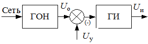 Функциональная схема СИФУ с вертикальным принципом управления приведена на рисунке 2.1. Генератор опорного напряжения (ГОН), синхронизированный с напряжением сети, формирует опорное напряжение . Последнее сравнивается с управляющим напряжением на входе СИФУ. В момент их равенства генератор импульсов (ГИ) формирует управляющий импульс , подаваемый на управляющий электрод тиристора.
