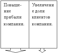 Диверсификация рисков компании за счет внедрения инноваций и как следствие расширения деятельности. Повышение конкурентоспособности. Повышение прибыли компании Увеличение доли клиентов компании. Увеличение занимаемой на рынке доли. |
