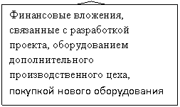 3.Финансовые вложения, связанные с разработкой проекта, оборудованием дополнительного производственного цеха, покупкой нового оборудования.