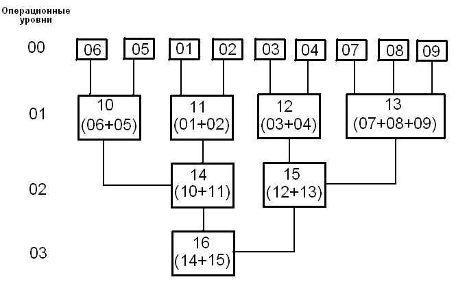 Представленный граф конструктивно-технологических переходов процесса обработки и сборки женского платья состоит из 3 операционных уровней. На первом и втором уровнях выполняется параллельная обработка деталей изделия, начиная с третьего уровня, детали обрабатываются последовательно.